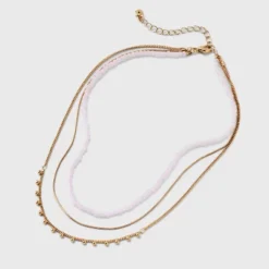 Semi-Precious Aventurine Jasper Lapis Opal Quartz Beaded Necklace Set 3pc – Universal Thread™