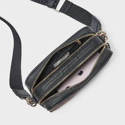 Carry your camera with ease and style wherever you go by using the Double Zip Camera Crossbody Handbag from Universal Thread™. This camera bag features an interior pocket to help provide enough space for your camera, cards and other essentials. Designed with a double zipper closure, this crossbody bag also has an adjustable shoulder strap for easy carrying.